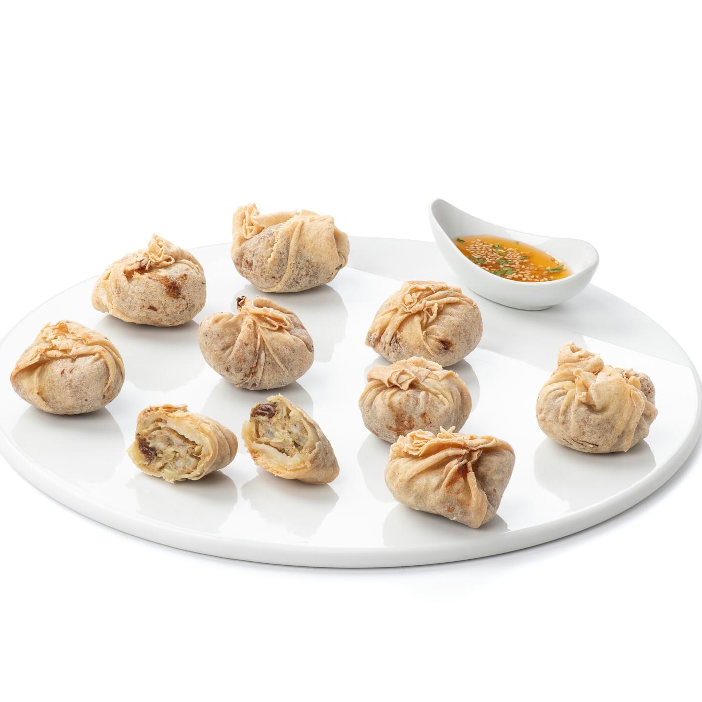 galette de blé garnie d’une farce au poulet origine France, mijotée dans un mélange d’épices, amandes effilées et oignons.