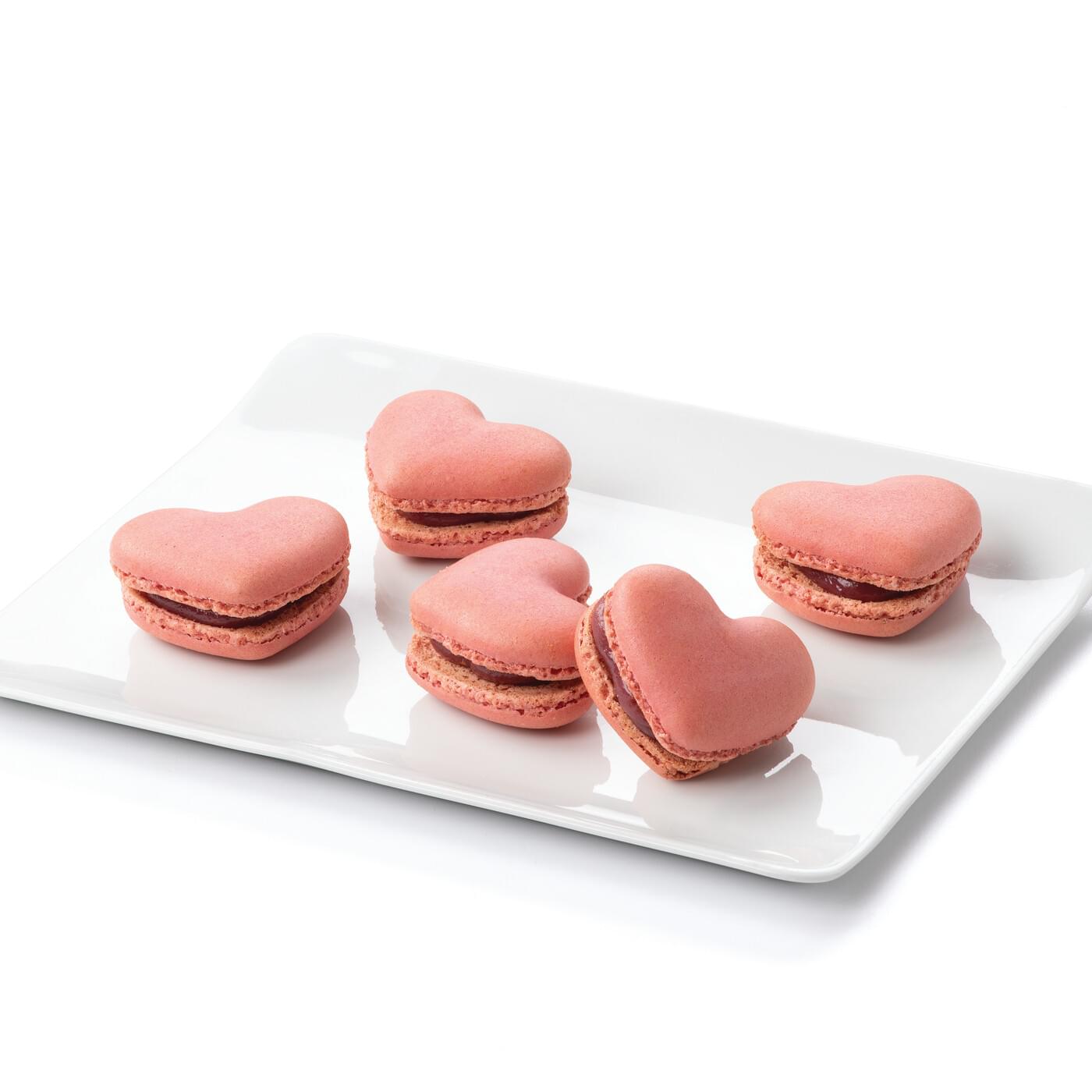 Coque de macaron à base de poudre d'amande, ganache framboise.