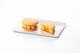 Coques de macaron bicolores : jaune et orange, insert mangue passion et ganache mangue passion.