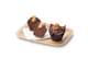 Pâte à muffin cacao, fourrage beurre de cacahuète et éclats de cacahuètes.